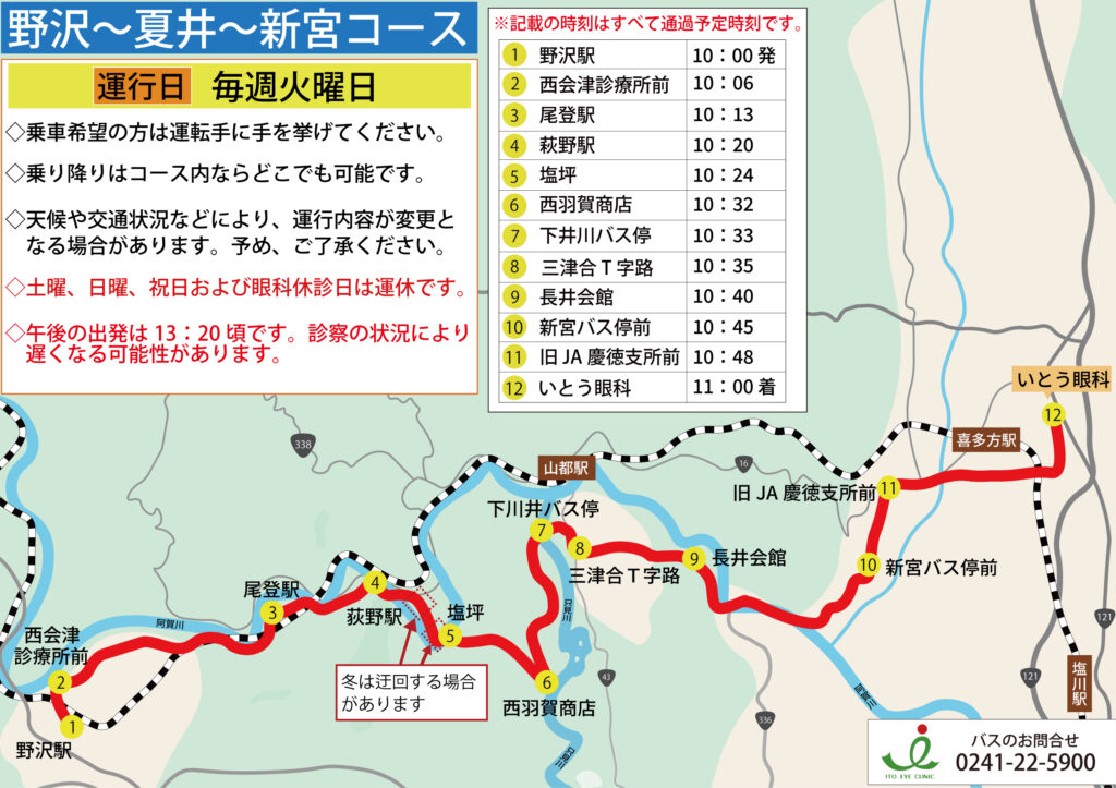 毎週火曜日運行(休診日は運休です。)
