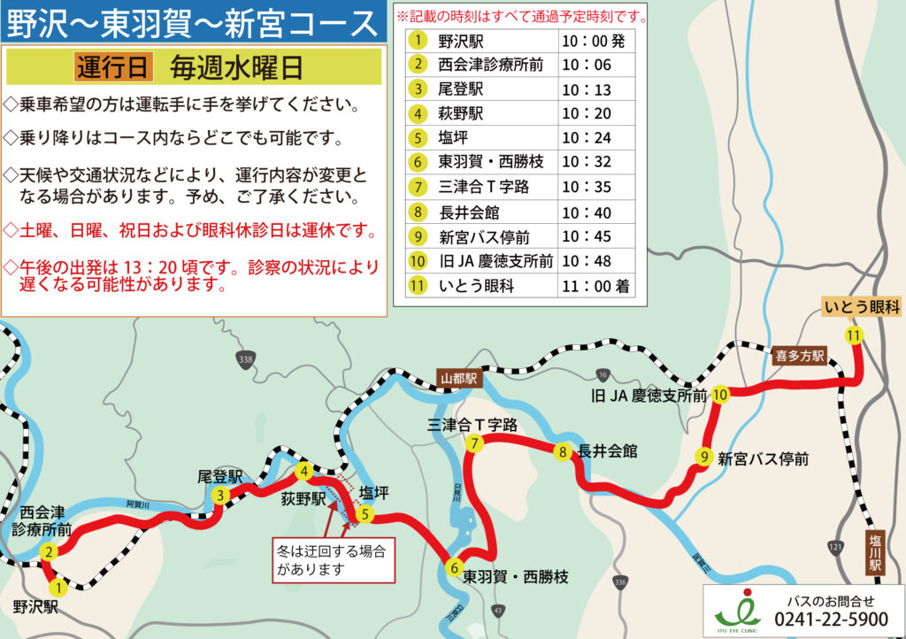 ※冬期は積雪等により経由時間、運行ルートが変更になる場合がございます。